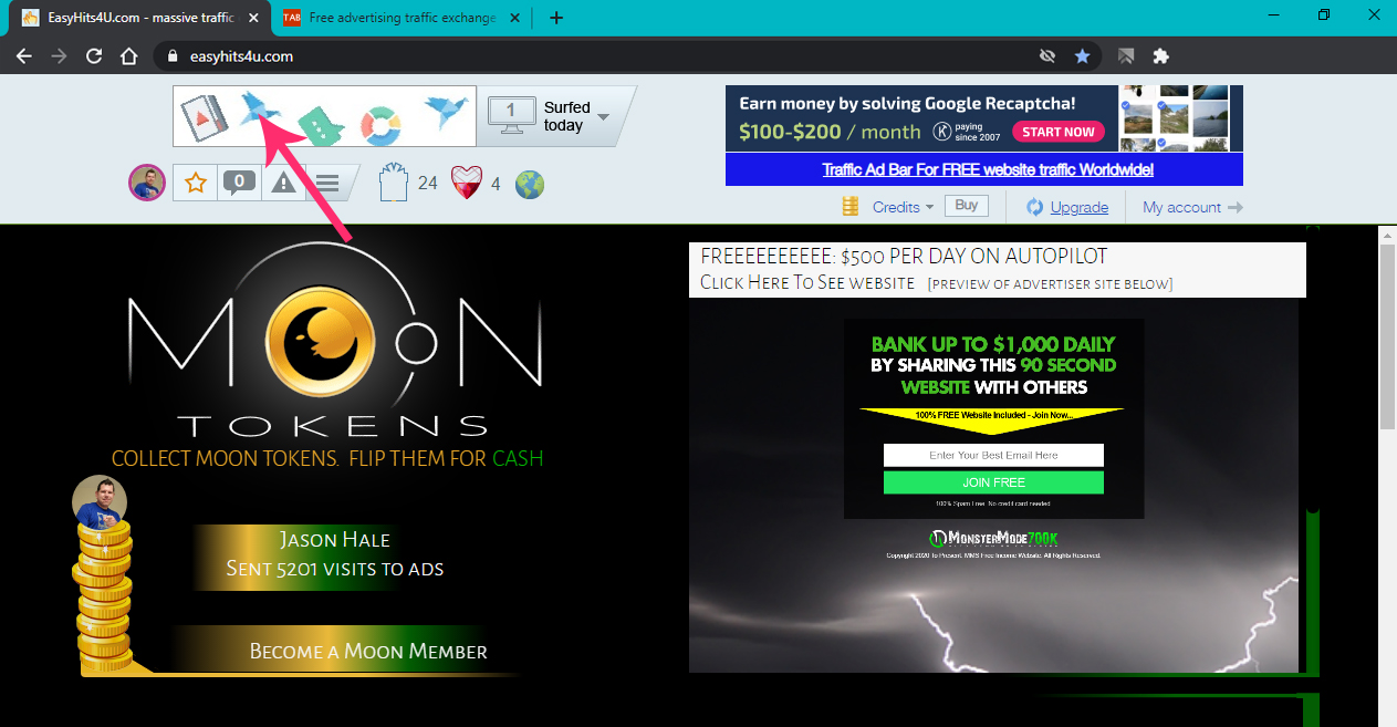 Now you should start surfing. In order for you to be efficient, open EasyHits4U, TrafficAdBar, TrafficG and Webmaster Quest in separate tabs.